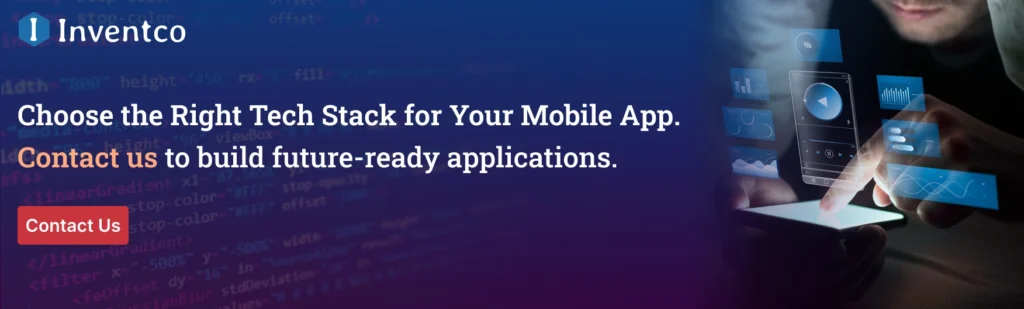 - Scalability: Selecting the appropriate mobile tech stack for your business applications supports the growth of your application, accommodates a large user base, and the evolution of new functionalities.
